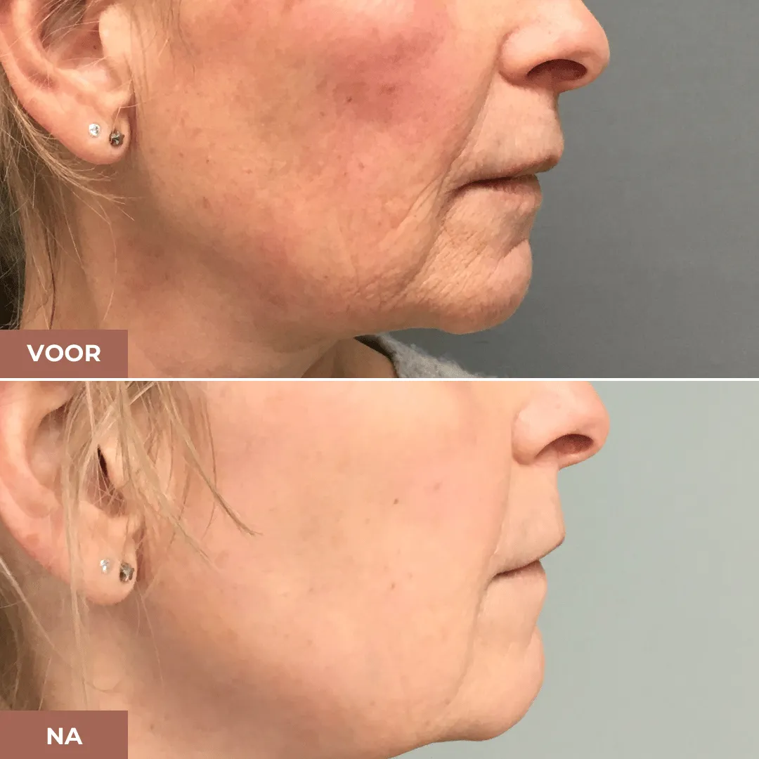 Profhilo biedt een subtiele verjonging die je huid een gezonde en stralende look geeft, zonder kunstmatig te lijken. Voor het beste resultaat zijn twee behandelingen, met een tussenpoos van vier weken, essentieel. Zo krijgt je huid de optimale stimulatie om collageen en elastine aan te maken. Het resultaat: een zichtbaar verjongde huid die er natuurlijk uitziet.